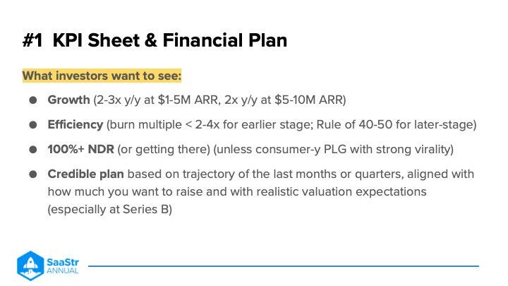 Investors want enough runway post-raise to reach the next clear milestone without constant fundraising.Burn multiple (net burn / net new ARR)